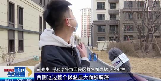 呼和浩特市武先生居住的小區(qū),剛交房三個多月,新新房子一場風過后,外墻保溫層就大面積脫落,砸落的水泥塊讓住戶們很是擔憂。