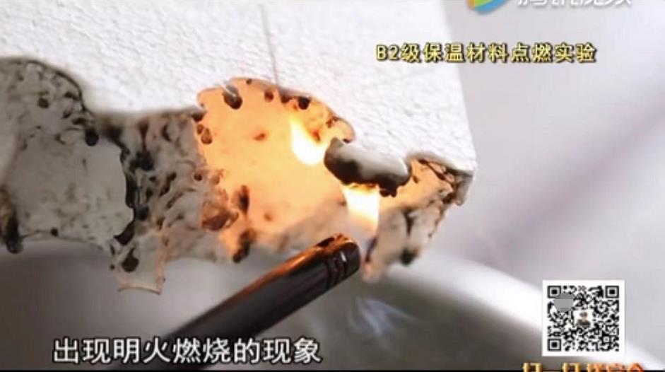 我們從建材市場購買了幾種比較常見的外墻保溫材料,接下來我們來做個(gè)實(shí)驗(yàn),來看一看這些材料的耐火性能究竟是什么樣的,接下來有請消防員小魏,F(xiàn)在呢,在我的面前就放了三種耐火等級分別是A級,B1級和B2級的外墻保溫材料。接下來,我們請小魏分別把他們點(diǎn)燃來看會是什么樣的,小魏首先用打火器去點(diǎn)燃耐火等級為A級的保溫材料,保溫材料沒有出現(xiàn)一點(diǎn)要被點(diǎn)燃的跡象,持續(xù)三分鐘后,保溫材料依然沒有被點(diǎn)燃,但是有顆粒狀物體散落。小魏又對耐火等級為B1級進(jìn)行測試,材料接觸火焰后,迅速回縮,但是一直沒有被點(diǎn)燃。耐火等級為B2級的保溫材料,在點(diǎn)火器燃燒的過程當(dāng)中出現(xiàn)了明火燃燒的現(xiàn)象。
