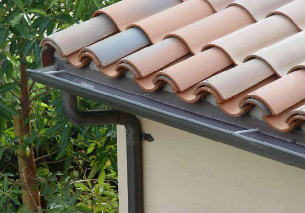 在雨水流下來的檐口,就有天溝接水,然后通過水落管排到地面,這樣就不會有雨水飄到墻上。