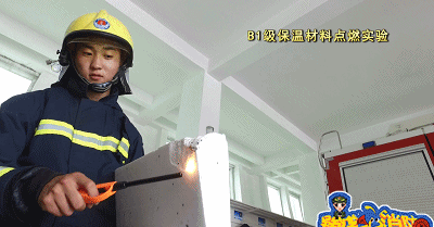 點燃A級保溫材料,保溫材料沒有出現一點要被點燃的跡象,持續(xù)三分鐘后,保溫材料依然沒有被點燃,但有顆粒狀物體掉落。