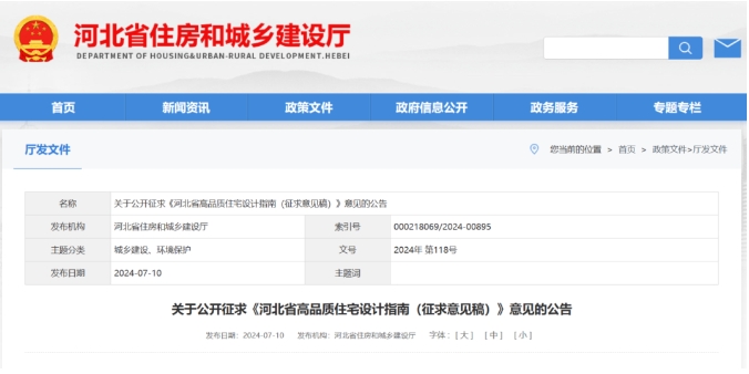 7月10日,河北省住建廳發(fā)布了《河北省高品質(zhì)住宅設(shè)計(jì)指南(征求意見稿)》。