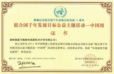 [銀通公告] 南陽(yáng)銀通獲聯(lián)合國(guó)千年發(fā)展目標(biāo)工藝主題活動(dòng)中國(guó)質(zhì)量周中國(guó)建筑節(jié) 日期:2012-01-31 16:28:18
