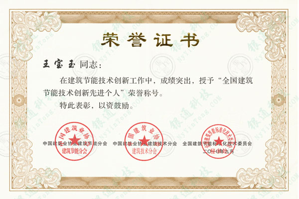 銀通集團王總獲全國建筑節(jié)能技術創(chuàng)新先進個人