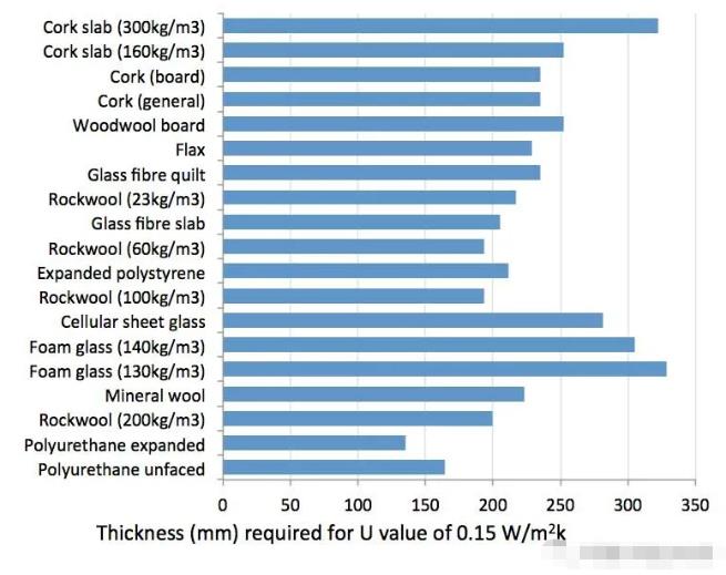 不同保溫材料在同等保溫傳熱系數(shù)目標(biāo)下的厚度對比