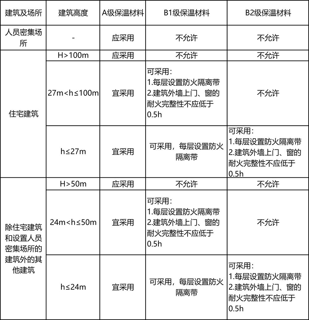 《建筑防火通用規(guī)范》與《建筑設計防火規(guī)范》都規(guī)定了外墻保溫材料宜采用A級不燃燒材料。目前的建筑外墻保溫材料防火等級主要有四級,宜采用A級不燃材料、不宜采用B2級可燃材料、嚴禁采用B3級易燃材料。