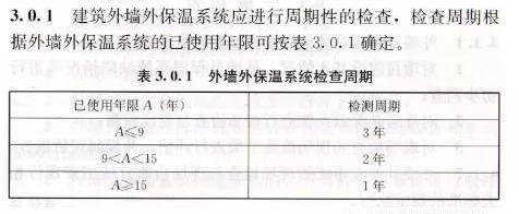 建筑外墻外保溫系統(tǒng)應(yīng)進(jìn)行周期性檢查,檢查周期根據(jù)建筑外墻外保溫系統(tǒng)使用年限確定。