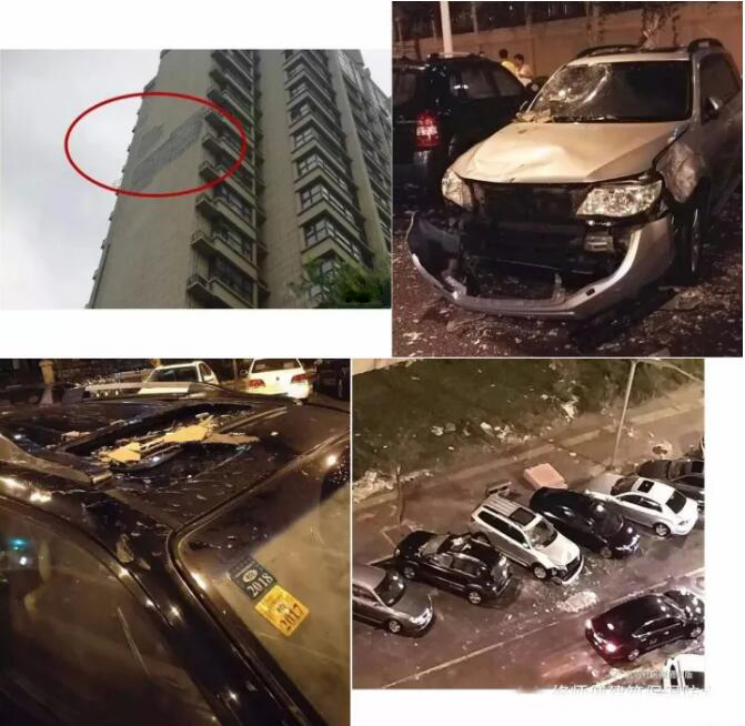 這讓我想起一個(gè)非常典型的例子,之前《北青網(wǎng)》有爆料“通州某高檔小區(qū)發(fā)生外墻皮脫落砸中轎車事件,停在樓下的多輛轎車遭殃,被砸轎車面目全非,所幸未造成人員傷亡..”