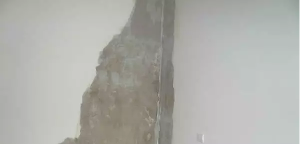 分析:墻面空洞很明顯是由于建造時在刷墻階段混入了垃圾造成的,可以看見里面有廢棄的鐵絲。
