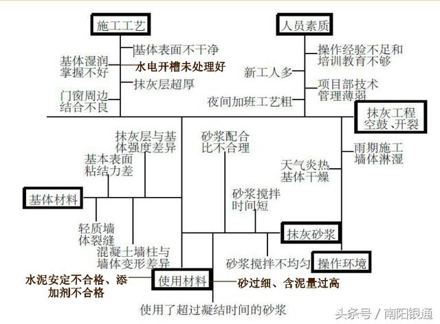 六、抹灰工程出現(xiàn)空鼓開裂質(zhì)量缺陷的因果分析圖