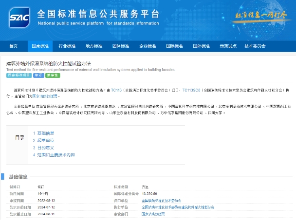 近日,國家標準計劃《建筑外墻外保溫系統(tǒng)的防火性能試驗方法》修訂開啟立項公示,該標準計劃由 TC113(全國消防標準化技術委員會)歸口,TC113SC8(全國消防標準化技術委員會建筑構件耐火性能分會)執(zhí)行 ,主管部門為國家消防救援局。本次修訂將進一步提升標準的時代性和先進性,與當前我國外墻外保溫系統(tǒng)的安全發(fā)展、雙碳背景下建筑節(jié)能的安全發(fā)展相適應,以高水平安全服務高質量發(fā)展。本標準適用于安裝在建筑外墻上的非承重外保溫系統(tǒng)的防火性能試驗。主要技術內容為:術語和定義、試驗裝置、試樣、狀態(tài)調節(jié)、試驗程序、試驗后的檢查、試驗結果判定和試驗報告等。