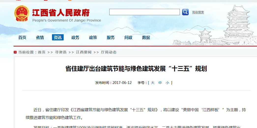近日,省住建廳印發(fā)《江西省建筑節(jié)能與綠色建筑發(fā)展“十三五”規(guī)劃》,將以建設(shè)“美麗中國(guó)‘江西樣板’”為主題,持續(xù)推進(jìn)建筑節(jié)能和綠色建筑工作。